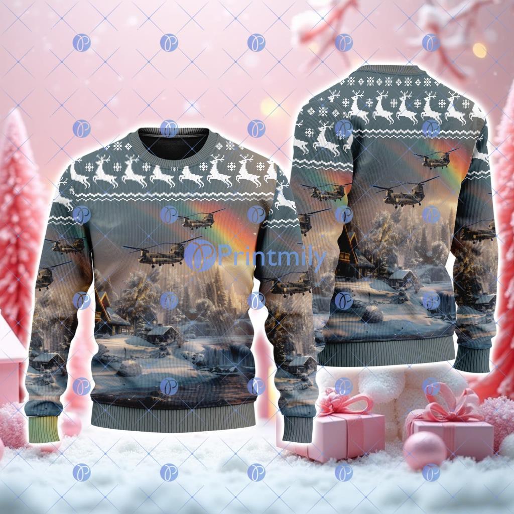 Embrace the Holiday Spirit with the Ch-47 Chinook American Airlines Christmas House Under The Rainbow Ugly Sweater 3D