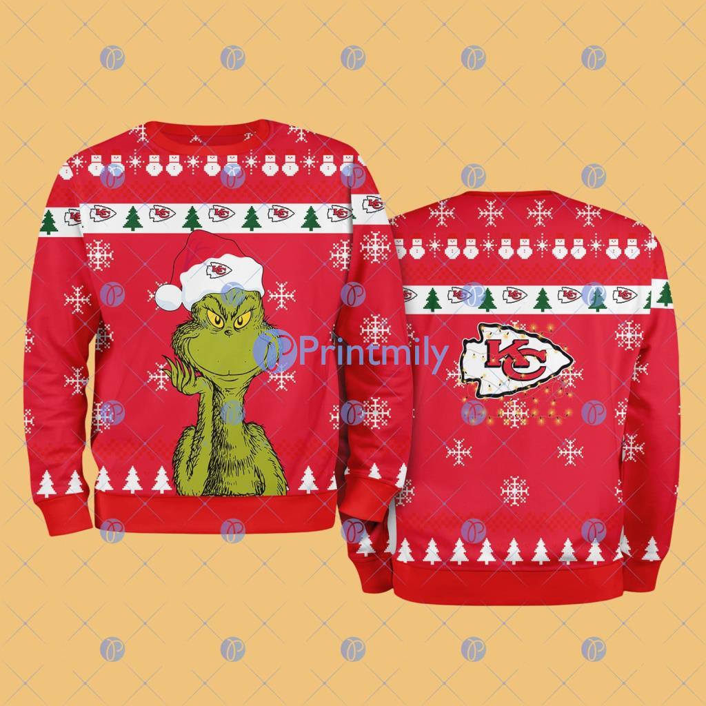 Get ready to spread holiday cheer with a twist of Kansas City Chiefs pride! This Kansas City Chiefs NFL The Grinch Funny Merry Christmas Ugly Sweater 3D is the perfect way to celebrate the season and your favorite team. Combining festive fun with team loyalty, this ugly Christmas sweater is a unique and eye-catching addition to your wardrobe. Ideal for NFL fans, holiday parties, or simply showcasing your team spirit during the festive season, this sweater is sure to be a conversation starter. Experience the joy of the holidays with a touch of Chiefs pride!